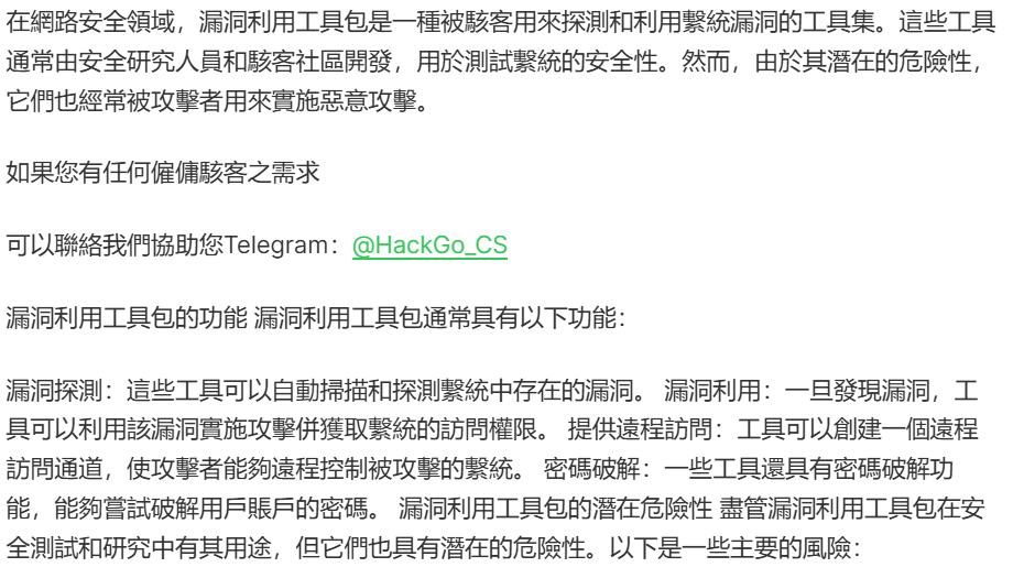 盡管漏洞利用工具包在安全測試和研究中有其用途,但它們也具有潛在的危險性。以下是一些主要的風險: